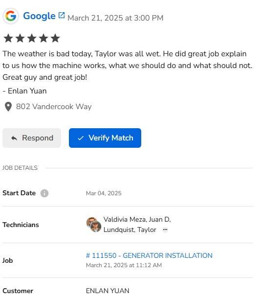Happy Wednesday! This past week, we received four 5-STAR Google reviews. One for Taylor Lundquist. Amazing job, Taylor!! One for Cory Smithlin. Fantastic job, Cory!! The last two reviews didn’t match up with any jobs in Service Titan. If they look familiar to you, please let me know, and I’d be happy to get you recognized! Keep up the great work, everyone!