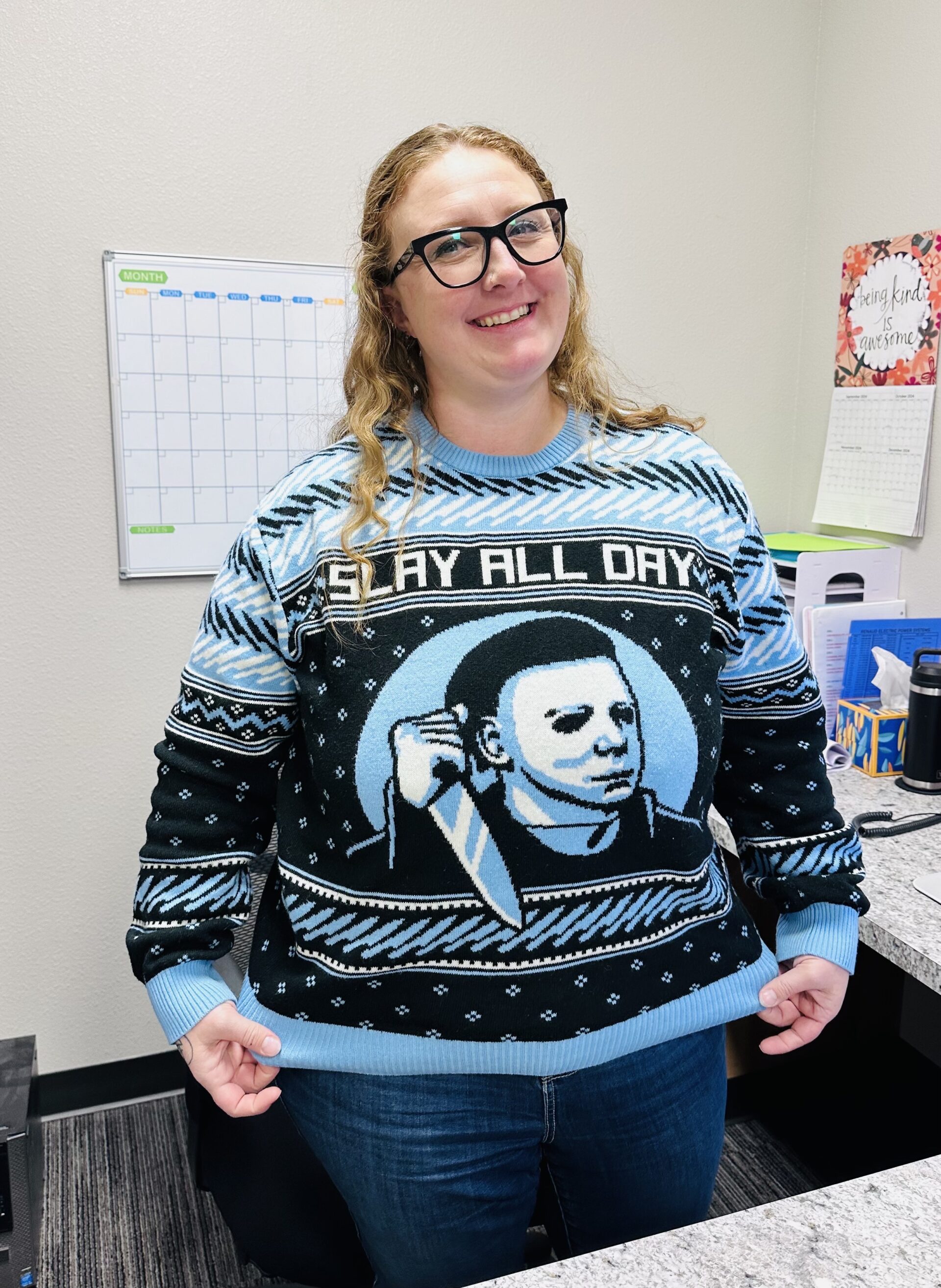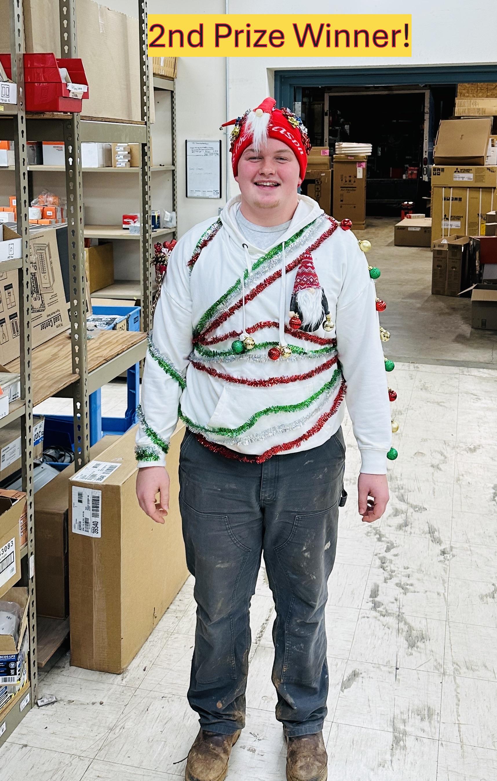 This year’s Ugly Sweater Contest did not disappoint! The “Major Award” winner was Katie dressed as the Leg Lamp from A Christmas Story! Reece took 2nd with his creative Christmas loving Gnomes! Skyler’s Suspender and Tie Sweater helped him to secure 3rd prize! Thanks to all that participated!! Such a fun way to bring a little holiday cheer to the workplace!